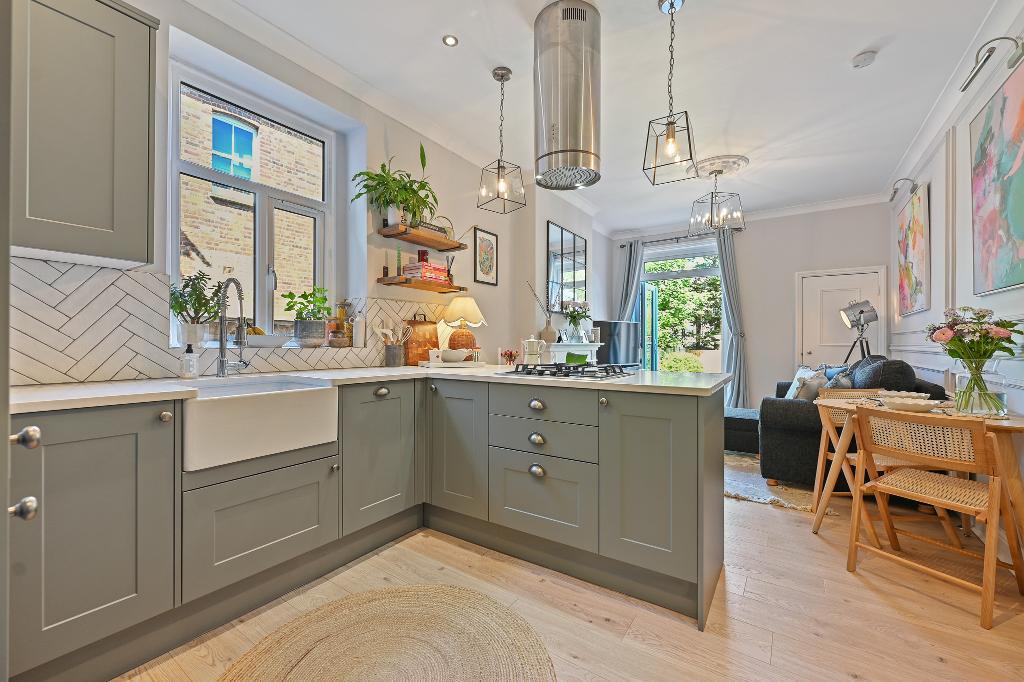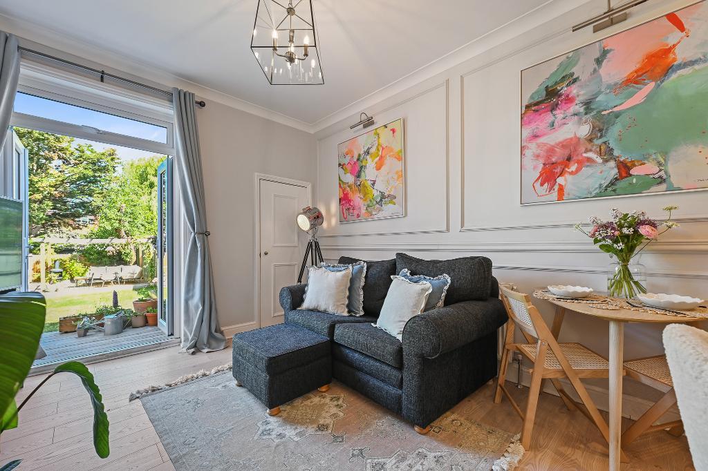The property is thoughtfully configured to maximize light and flow. It comprises of 2 double bedrooms, newly renovated high standard bathroom suite, modern kitchen open to reception room with French doors opening to a generous 60-foot private and partially decked garden, double glazed, wood style floors. Potential to extend at the rear and side. Scope for off-street parking; subject to usual consents.